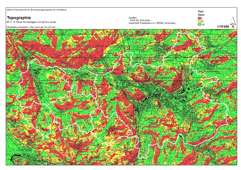 Karte der topologischen Situation in der Regoin Winterthur und deren Eignung für Grossprojekte