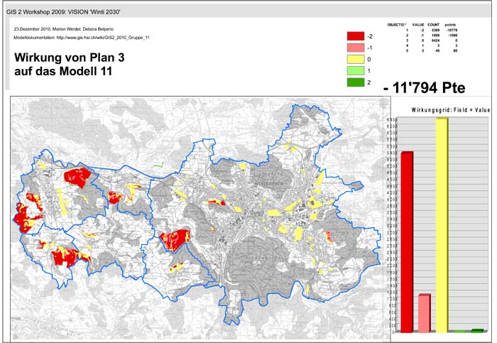 Bei der Modellbearbeitung, welches der optimale Standort der unterschiedlichen Themen gemäss Planungsprogramm aufweist, wurden jeweils die relevanten Rasterdaten einbezogen. Diese Rasterdaten wurden in einem vorgehenden Prozess von verschiedenen Gruppen erarbeitet.