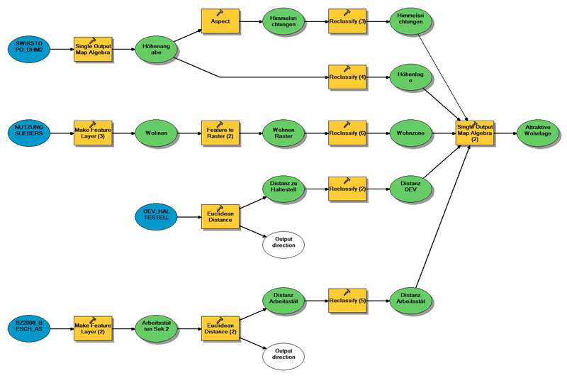 • Weichfaktoren: Distanz zu ÖV-Haltestellen, Höhenlage, bevorzugte Himmelsrichtung, Distanz zu Arbeitsstätten