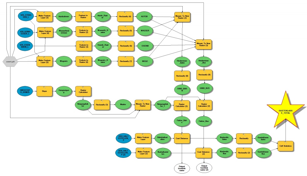 Für die Standortwahl wurden die Rasterdaten der verschiedenen Gruppen je nach Inhalt unterschiedlich überlagert und gewichtet: