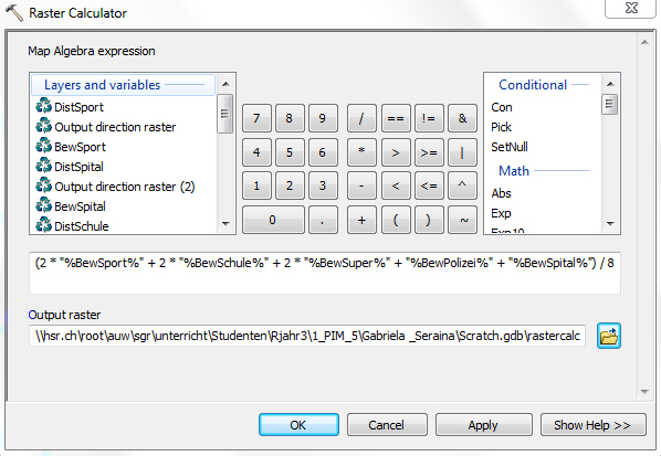 Für jede Einrichtung erstellen wir eine Karte mit den Distanzen. Dafür verwenden wir das Tool "Euclidean Distance" im ArcMap.