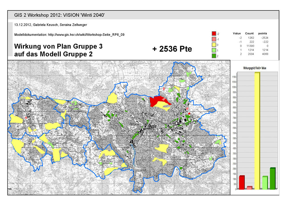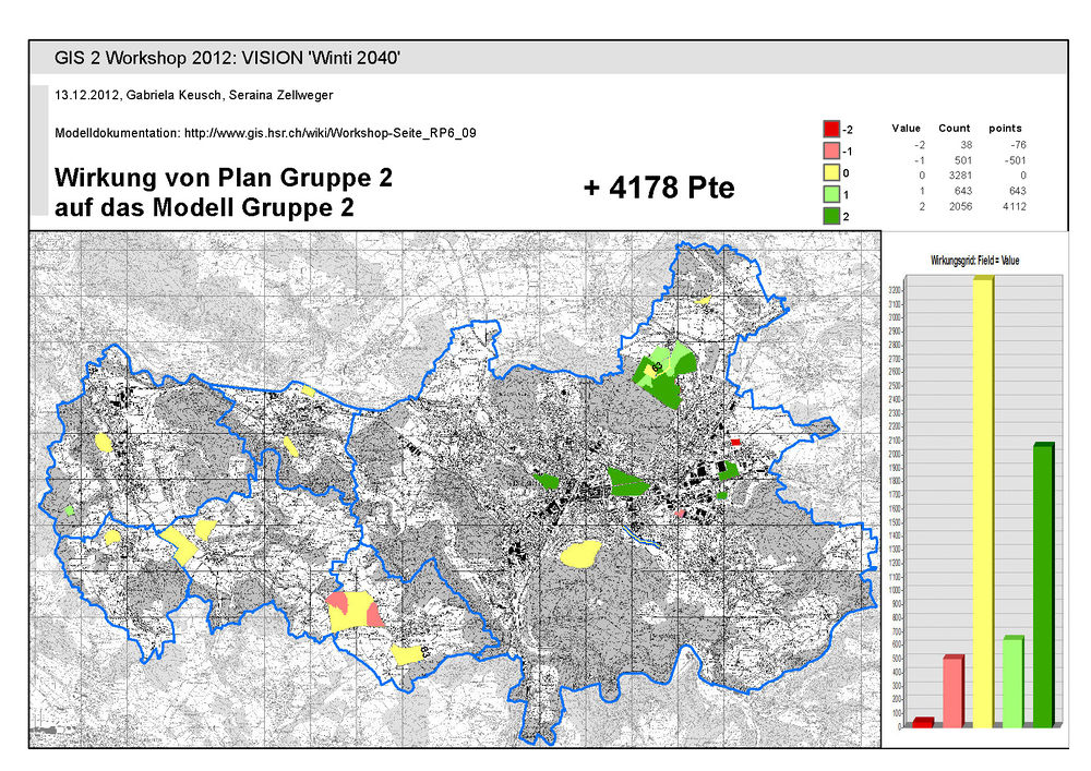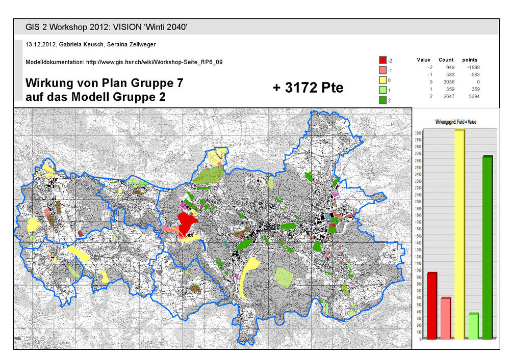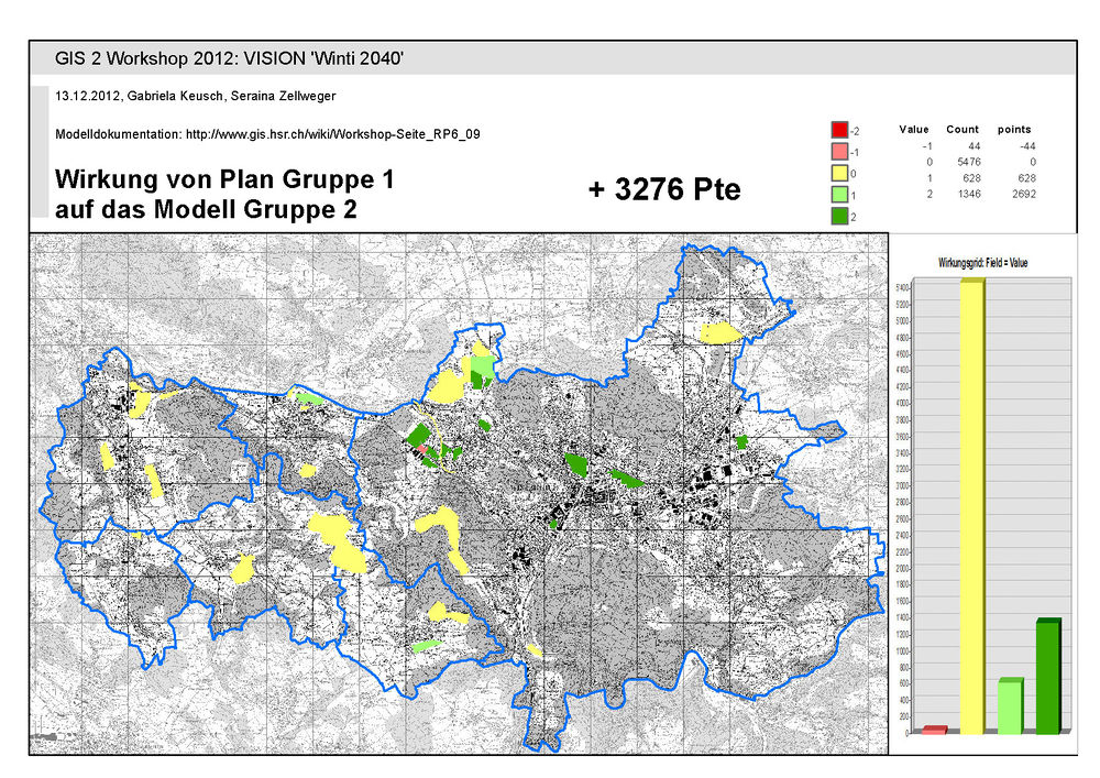 In der Wirkungsanalyse werden die Planungen aller Gruppen mit dem Bewertungsmodell "Versorgungsdichte" kombiniert.