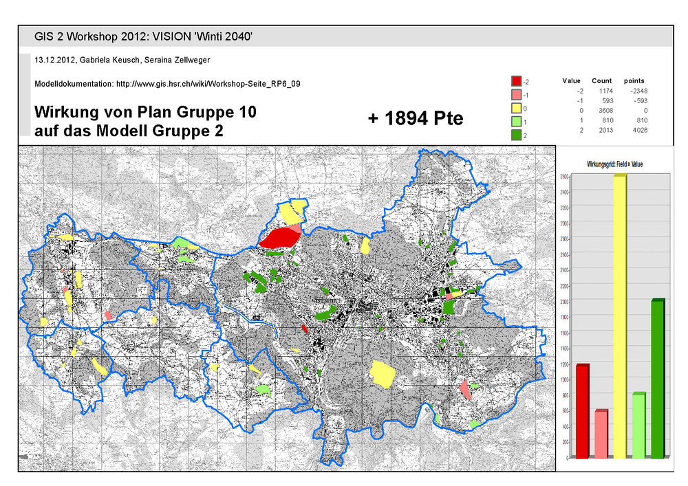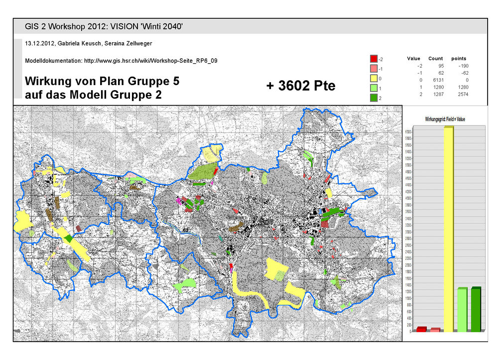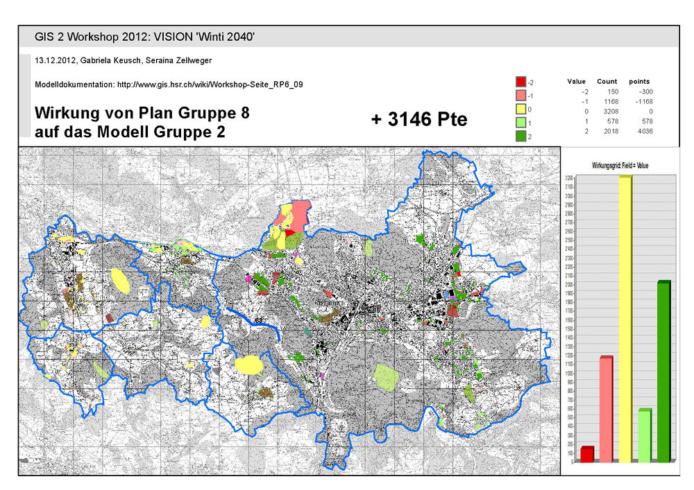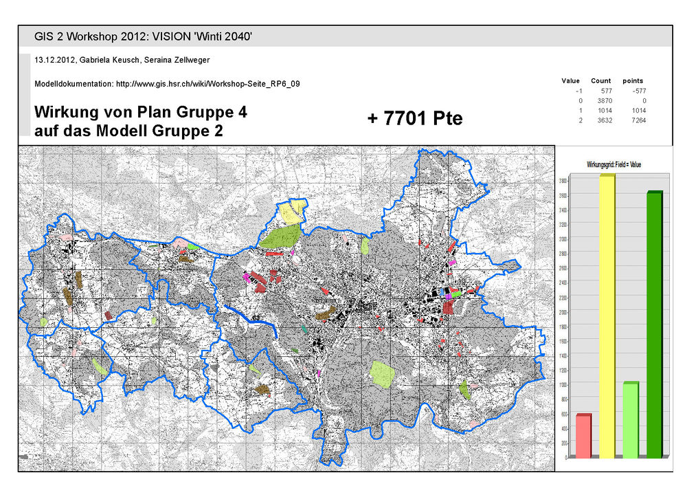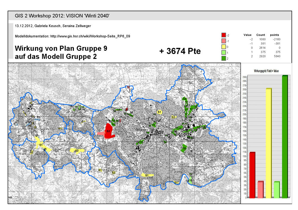 In der Wirkungsanalyse werden die Planungen aller Gruppen mit dem Bewertungsmodell "Versorgungsdichte" kombiniert.