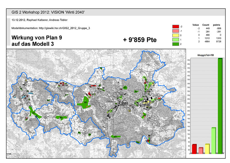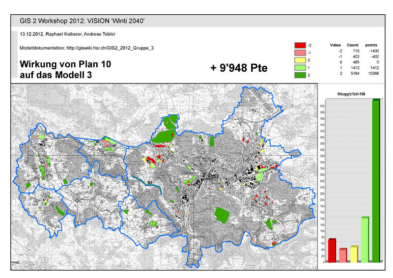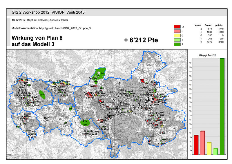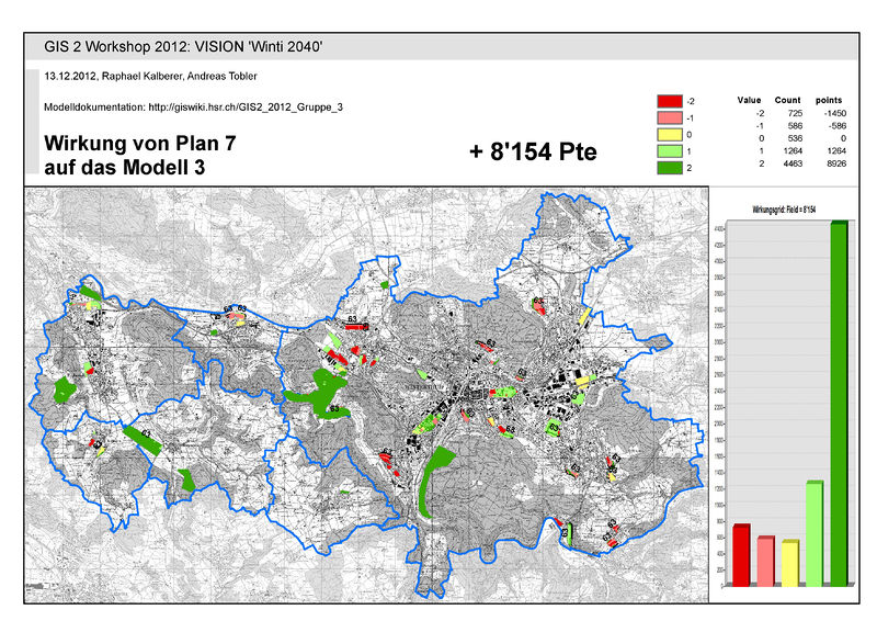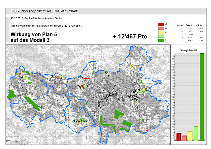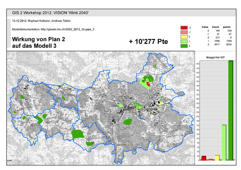 Die Übung 3 werden alle Planungen mit dem eigenen Bewertungs- und Wirkungsmodell getestet und bewertet. Je besser die einzelnen Planungen mit dem Bewertungs- und Wirkungsmodell übereinstimmen, desto grösser die Punkteanzahl.