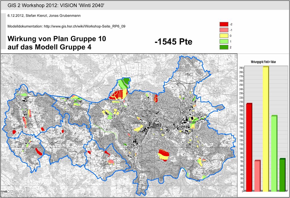Mit der Wirkungsanalyse wurden die Resultate der Entwicklungsvision jeder Gruppe mit dem Bewertungsmodell der Erschliessungsqualität bewertet.