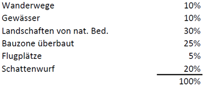- Relevanz: Nähe zu Landschaft (je näher umso besser)