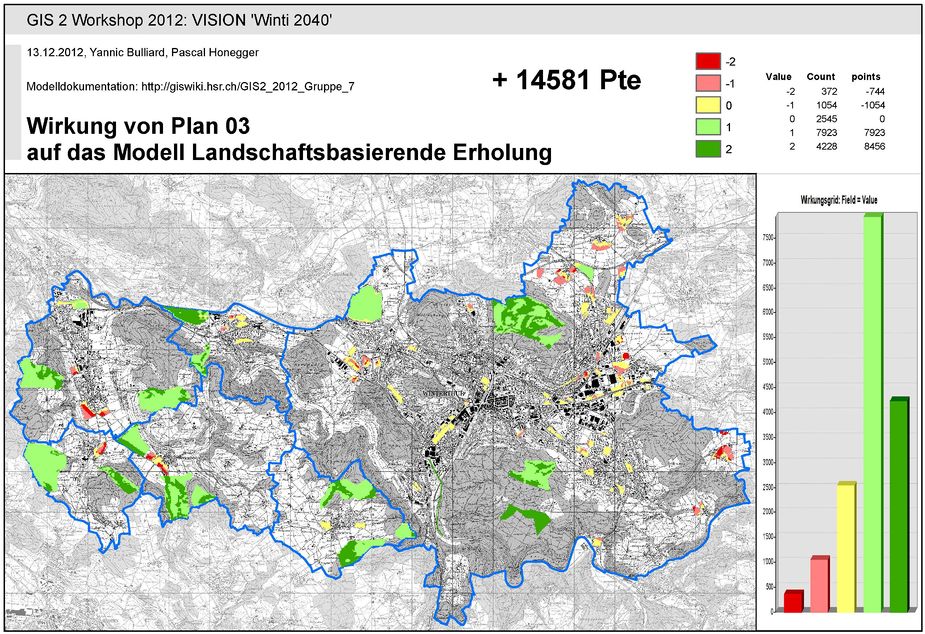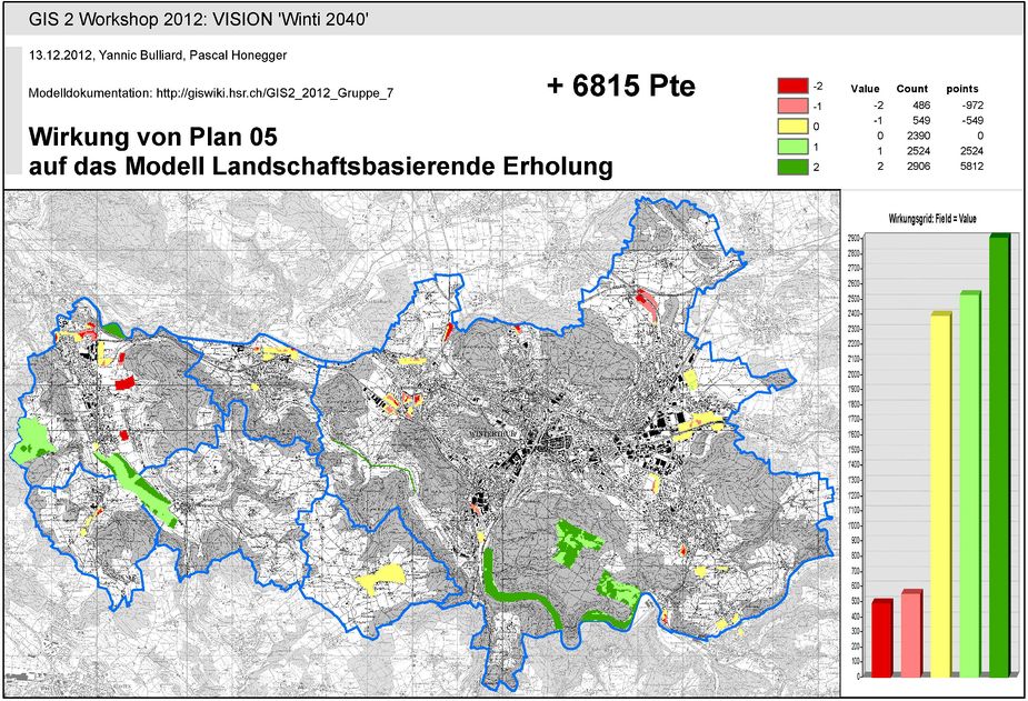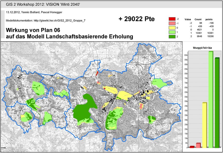 In der Wirkungsanalyse werden die Planungen aller Gruppen mit dem Bewertungsmodell "Landschaftsbasierende Erholung" kombiniert. ...