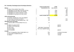 Die Wirkungsanalyse basiert auf der Potentialerhebung. Für das Veränderungspotential der Bevölkerung wird eine Wirkungsmatrix erstellt. Sie Ist die Berechnungsgrundlage der Wirkungsanalyse. Die in den Szenarien geplanten Gebieten wird je nach eigenart ein Wert zugeordnet. So passt die Potentialerhebung z.B. gar nicht auf Industriegebiete, da diese keine Wohnbevölkerung hat.