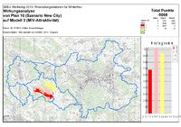 • Das Szenario "New City" verliert seine Attraktivitätspunkte hauptsächlich aufgrund der Lage in einem heute nicht erschlossenen Gebiet, da mit der Vorgehensweise neue Strassen nicht ausreichend berücksichtigt werden (--> siehe Schlusskritik).Es schneidet mit minus 5068 Punkten am schlechtesten ab.