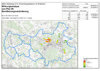 Der direkte Vergleich der beiden Planungen 4 und 7 ergibt, dass die Planung 7 gesamthaft eine bessere Verteilung der neuen Einwohner hat, währenddessen in der Planung 4 einige Gebiete eine Abwanderung verzeichnen würden. Daher wird die Planung 7 als die bessere Lösung betrachtet.
