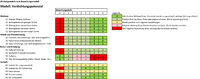 Die Wirkungsmatrix zeigt die Punktewertung der verschiednene neuen Gebiet ein Bezug auf das zuvor erarbeitete Bewertungsschema von 0-5. Im Modell Verdichtungspotenzial ist eine Verteilung im bereits vorhandenen Siedlungsgebiet absolut wünschenswert und wird somit mit 1-2 je nach noch möglicher Verdichtung im Siedlungsgefüge bewertet. Alles was ausserhalb der heutigen Bauzonen (0) liegt ist keine Verdichtung und wird darum mit -2 bewertet. Verschiednen Themen habe keinen direkten Zusammenhang mit der Verdichtung und sind sdeshalb neutral zu betrachten.