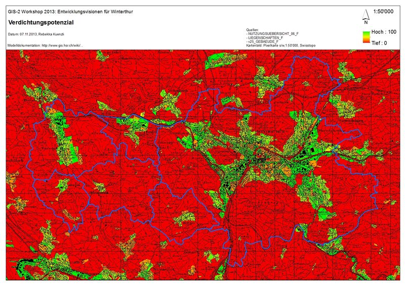 Um die künftigen zusätzlichen 10'000 Einwohner im Umfeld Wintertuhr unterzubringen, muss nicht nur neues Bauland eingezont werden. Das heutige Bauland ist bei Weitem noch nicht vollständig ausgenutzt bzw. überbaut. In der Verdichtung liegt ein grosses Potenzial. Das Ziel dieser Arbeit besteht darin dieses Potenzial zu erfassen und aufzuzeigen.