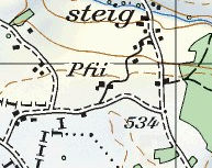 - Diese Schreibversionen entsprechen in etwa der Schreibweise auf der Siegfriedkarte, wobei diese z.T. etwas an die Schreibweise ab 1957 angepasst wurde. Beispiel Rotbühl (Siegfriedkarte 1945: Rothbühl).