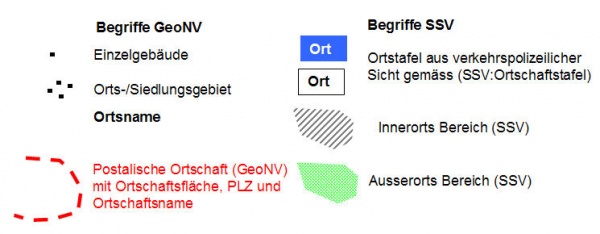 In der GeoNV wurde unter Ortschaft ein anderer Begriff definiert (postalische Ortschaft), als er in der bisherigen Gesetzgebung bereits verankert war (in der SSV und VRV bedeuten Ortschaft ein Ort und nicht eine postalische Ortschaft wie in der GeoNV).