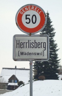 Ortstafel Herrlisberg (pol. Gemeinde Wädenswil) in der postalischen Ortschaft Wädenswil