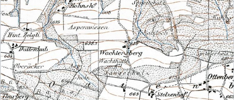 Hünikon und Holzhäusern in der Siegfriedkarte 1885 Schreibweisen bis 1945 unverändert |