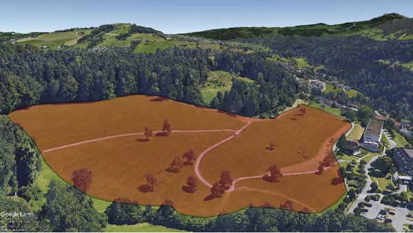 Anhand der Bewertungskarte haben wir weitere geeignete Standorte erruiert. Bei einem davon handelt es isch um eine Fläche östlich der Stadt Luzern und angrenzend an Adligenswil. Das Gebiet trägt den Flurnamen "Hemschlen" und liegt oberhalb des Kurhotels und Residenz Sonnmatt. Das Gebiet liegt in der Landwirtschaftszone, grenz an eine Waldfläche, weist eine hohe Neigung auf, ist Richtung Süden gerichtet und liegt auf einer Höhe von 580m.ü.M. Für eine mögliche Bewirtschaftung als Weinrebe ist die Erschliessung bereits vorhanden.