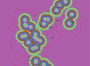 Der Datensatz wurde gerastert (Spatial Analyst Tool -> Distance -> Euclidian Distance) und mittels Grenzwerten einer bestimmten Wertung zugeteilt (Reclassify).