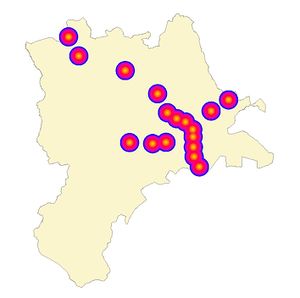 Durch die Berechnungen der Rasterfiles mit ihrer Punktzahl entstand eine sogenannte Heat Map, welche die optimalsten Standorten für ein Kantonsspital aufzeigt. Diese Heat Map wurde mit einem Luftbild hinterlegt um die Standorte besser definieren zu können. Die Legende zeigt die Farbe und die summierte Punktzahl auf. Je höher die Zahl, desto besser der Standort. Die Standorte in der Bildergalerie weissten zeigen die Standorte mit den besten Punktzahl auf.