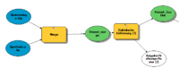 • Öffne ArcToolbox - Data Management Tools - General - Merge. Und ziehe dies ins Model (oranger Baustein).