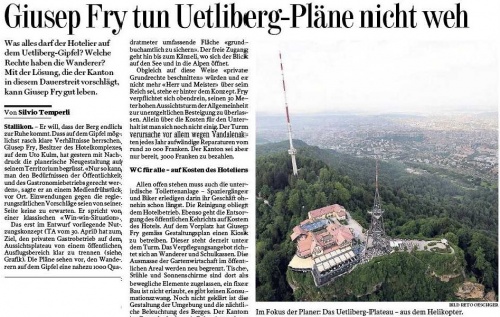 30.5.2008 Tagesanzeiger Giusep Fry tun Uetliberg-Pläne nicht weh
