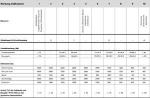 Als Erstes wurden Indikatoren für die Eignung von verdichtet gebauten Gebieten aufgestellt. Den verschiedenen Ausprägungen dieser Indikatoren wurden nachfolgend Punkte von 1 (schlecht) bis 10 (sehr gut) verteilt. Die untenstehende Tabelle zeigt das Resultat von Arbeitsschritt 1.