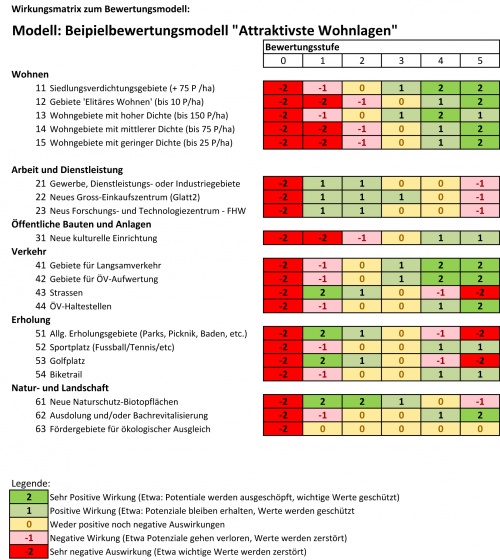 Bei der Wirkungsmatrix wurden die einzelnen Auswirkungen gemäss Planungsprogramm auf die "Attraktivste Wohnlagen" gewertet.