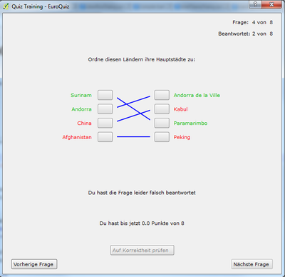 - Los geht's mit "Start quiz" oder "Train quiz"...