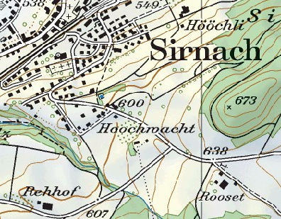 | Fäldhof auf der Landeskarte | In map.search.ch wird nur die Adresse Feldhof Sirnach gefunden. |