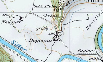 | Degenau in der Landeskarte | Degenau in map.search.ch, wo Degenau auch als Tägenau gefunden wird. |